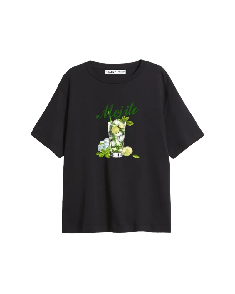 Iced Mojito Baskılı Relaxed Fit Siyah Kadın Tshirt