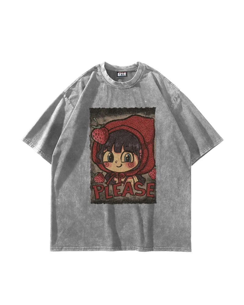 Little Red Riding Hood Baskılı Oversize Unisex Yıkamalı Beyaz Tshirt
