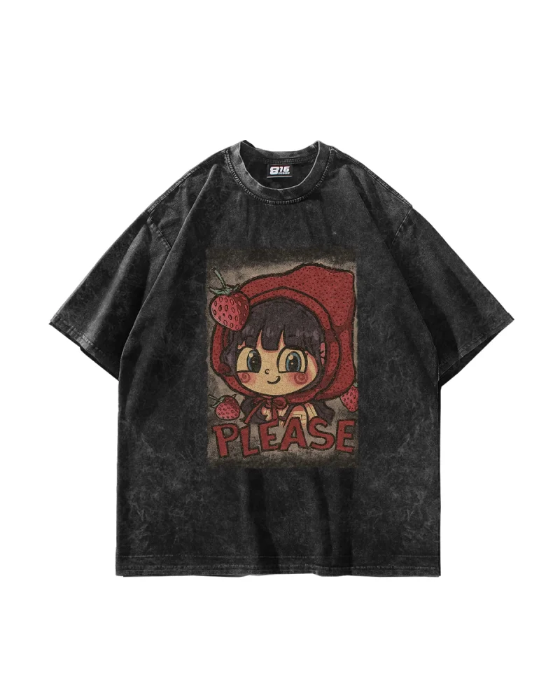 Little Red Riding Hood Baskılı Oversize Unisex Yıkamalı Siyah Tshirt
