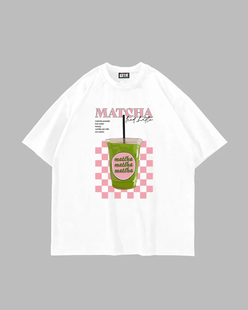 Matcha Iced Latte Baskılı Oversize Unisex Beyaz Tshirt