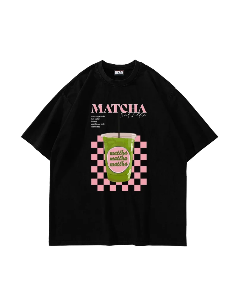 Matcha Iced Latte Baskılı Oversize Unisex Siyah Tshirt