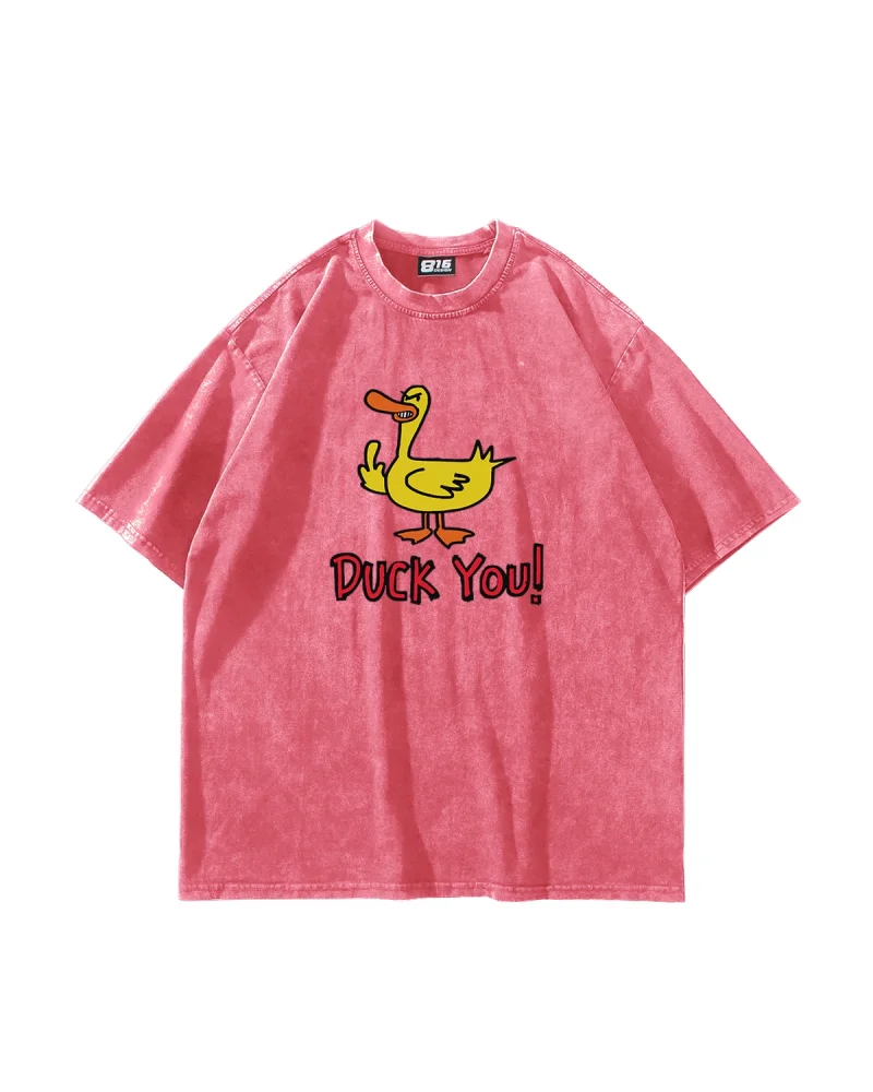 Duck You! Baskılı Oversize Unisex Yıkamalı Pembe Tshirt