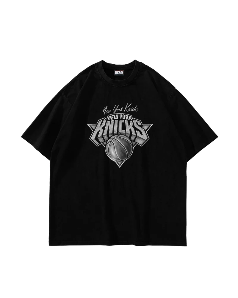 Knicks Baskılı Oversize Unisex Siyah Tshirt