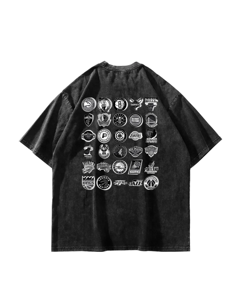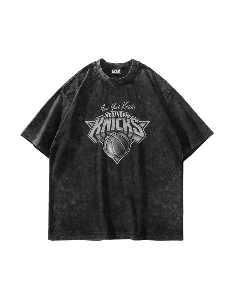 Knicks Baskılı Oversize Unisex Yıkamalı Siyah Tshirt