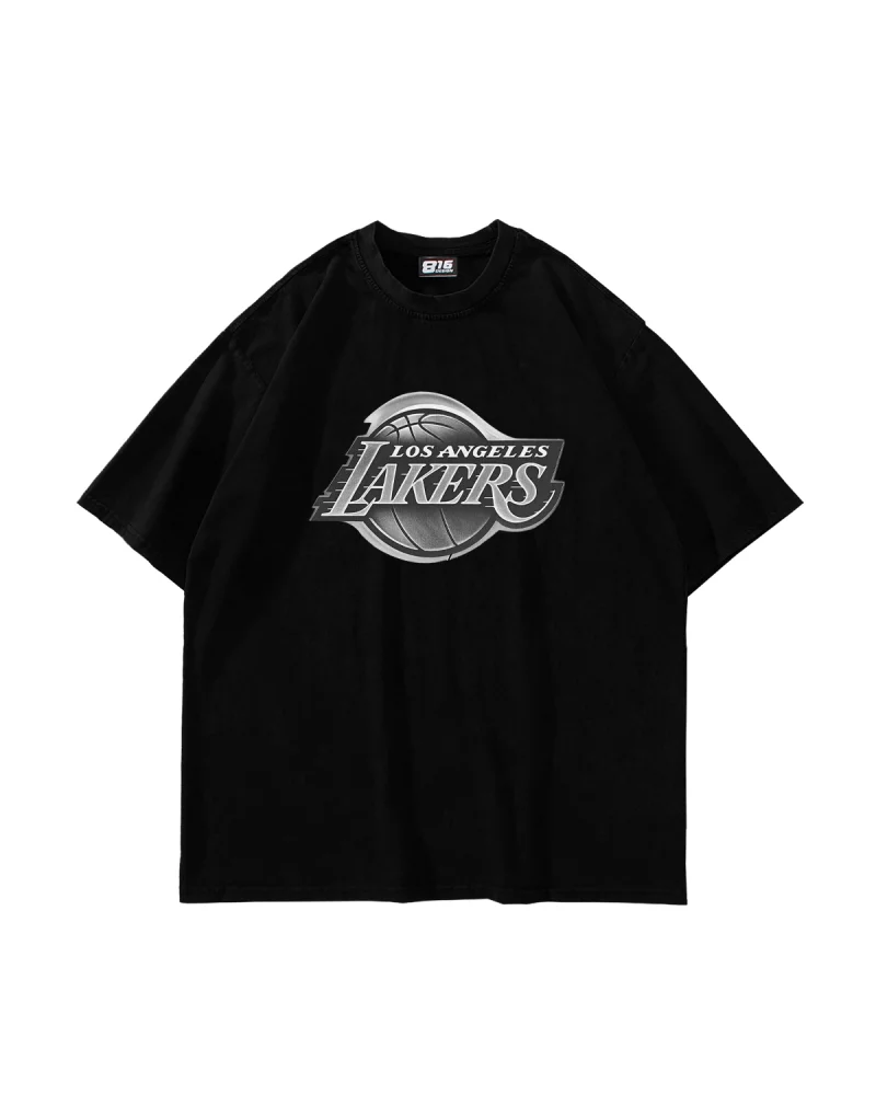 Lakers Baskılı Oversize Unisex Siyah Tshirt