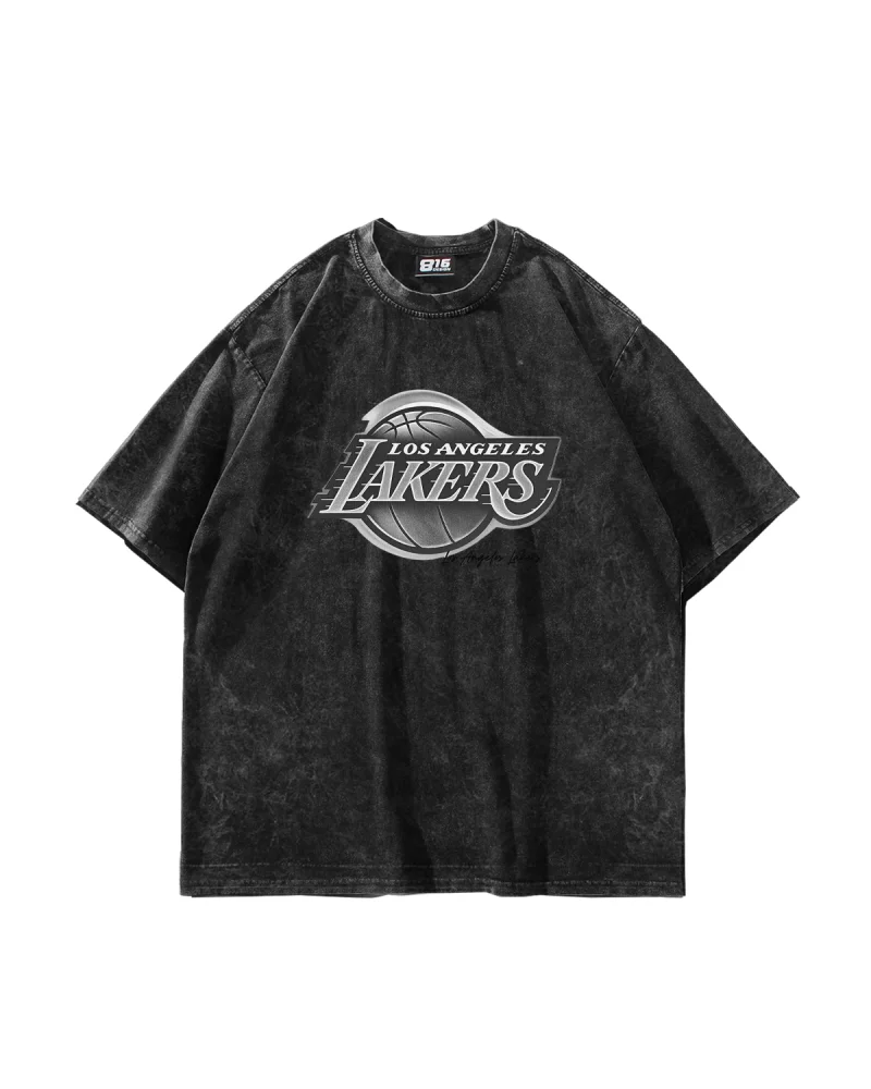 Lakers Baskılı Oversize Unisex Yıkamalı Siyah Tshirt