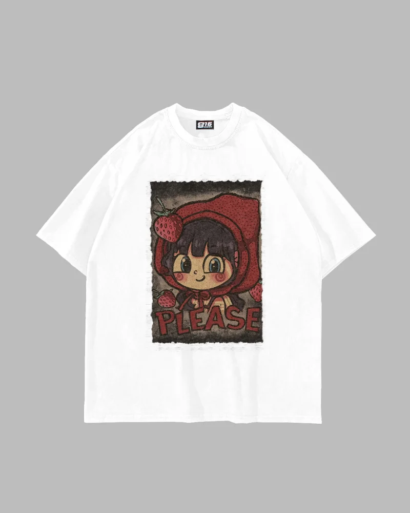 Little Red Riding Hood Baskılı Oversize Unisex Beyaz Tshirt