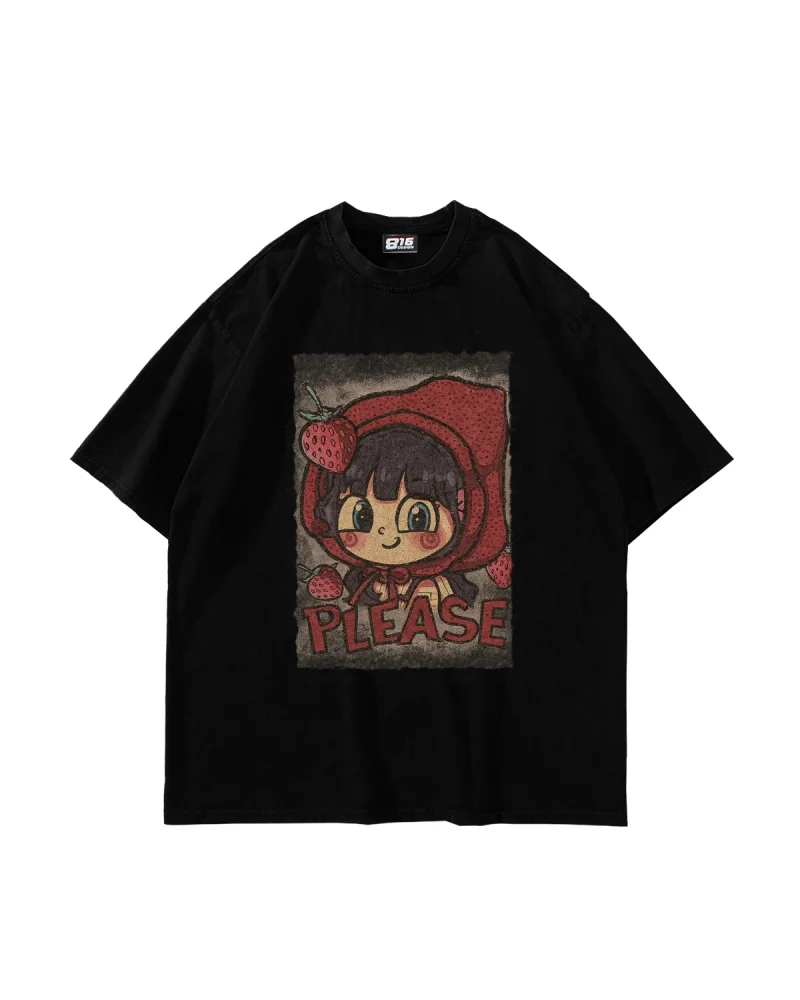 Little Red Riding Hood Baskılı Oversize Unisex Siyah Tshirt