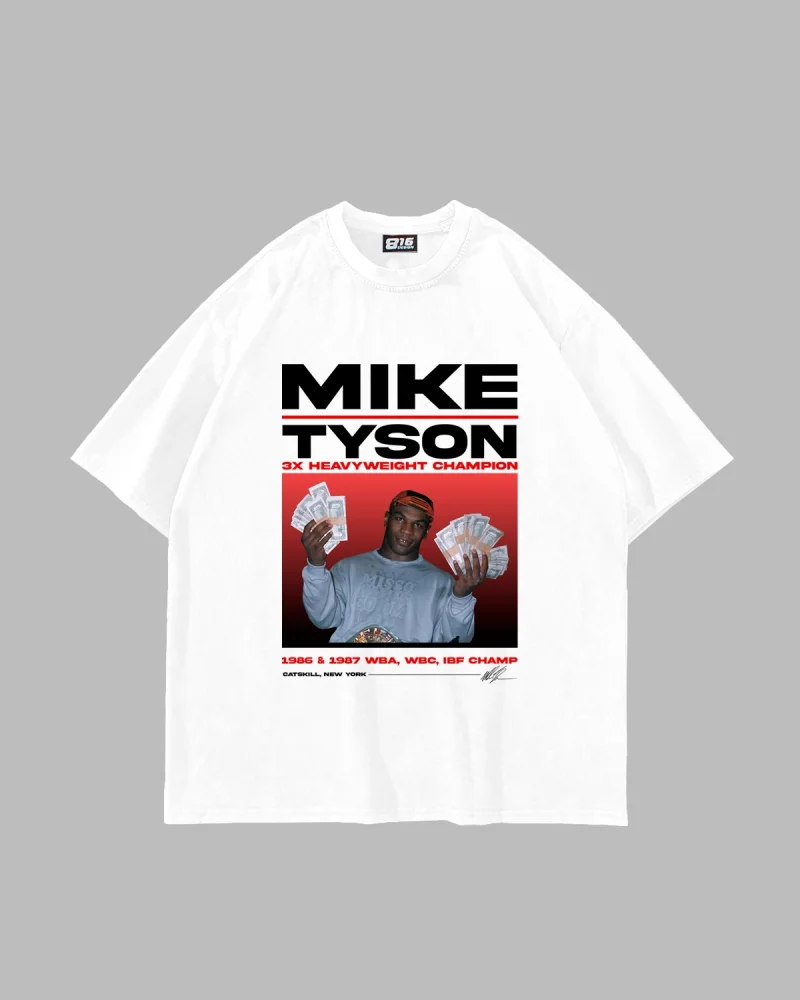 Mike Tyson Baskılı Oversize Unisex Beyaz Tshirt