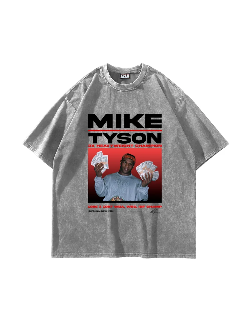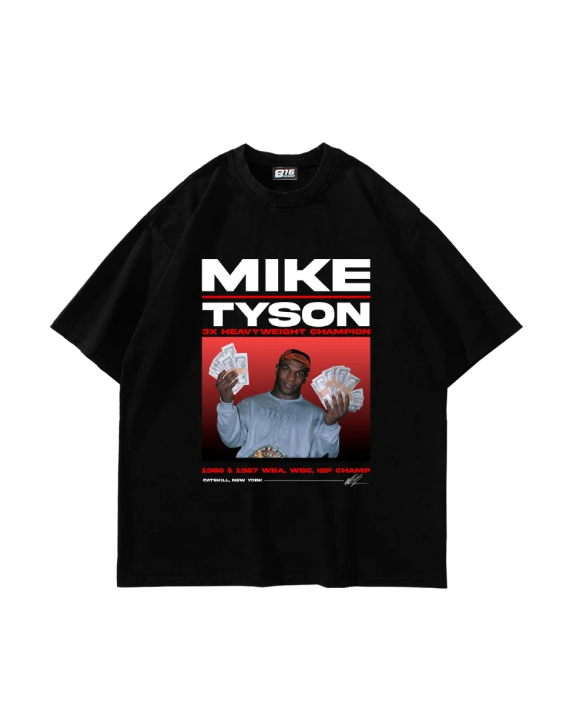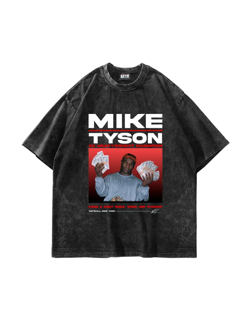 Mike Tyson Baskılı Oversize Unisex Yıkamalı Siyah Tshirt