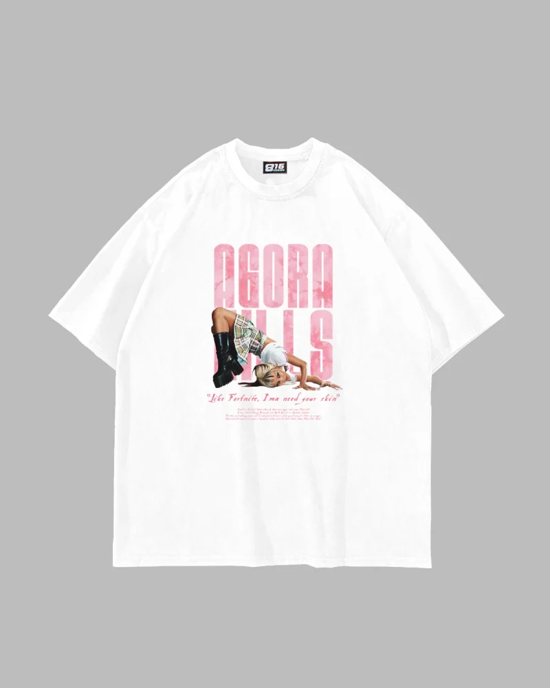 Agora Hills Baskılı Oversize Unisex Beyaz Tshirt