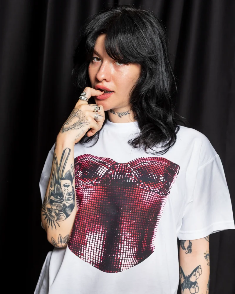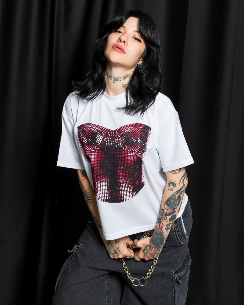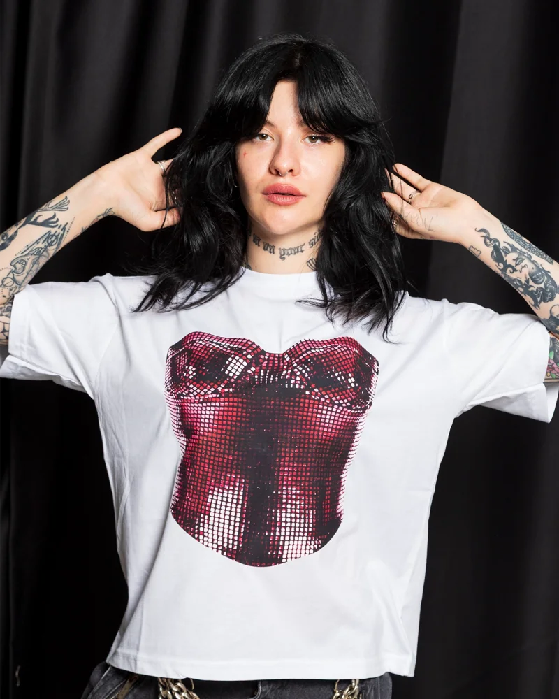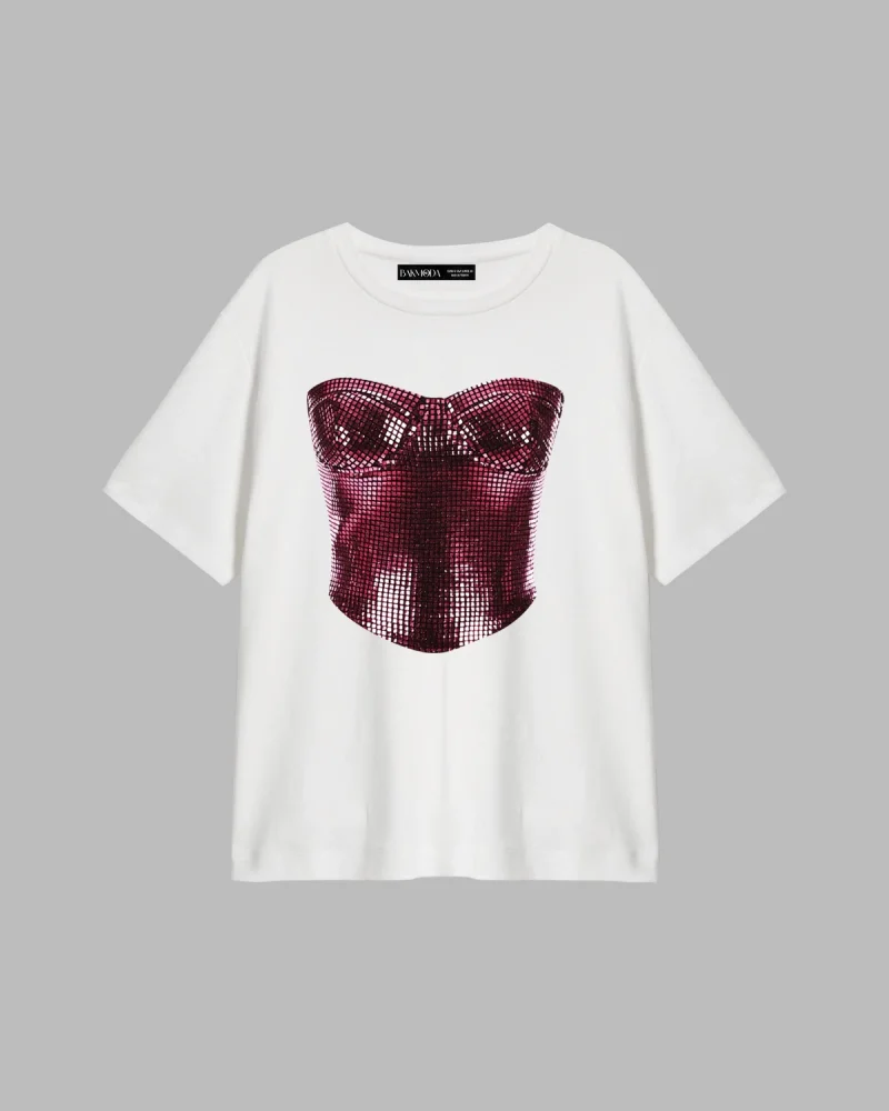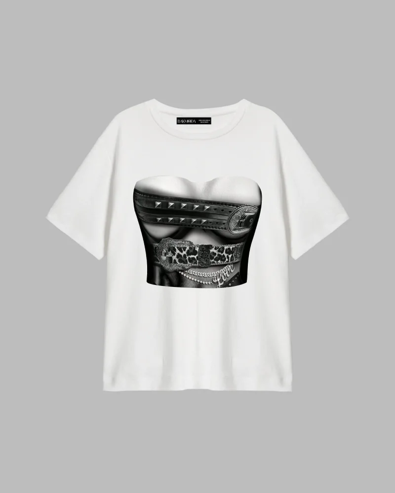 Corset Baskılı Relaxed Fit Beyaz Kadın Tshirt