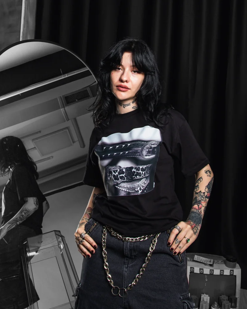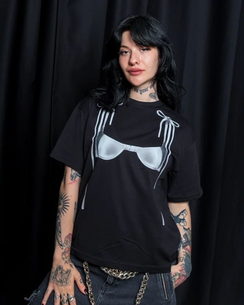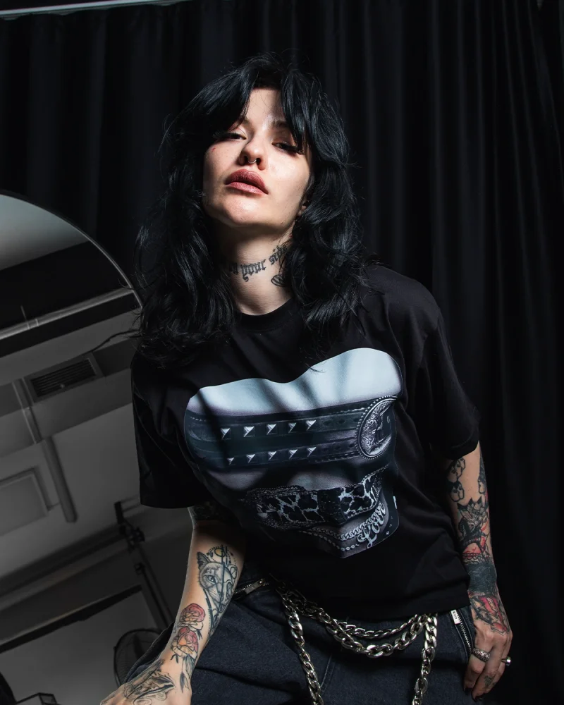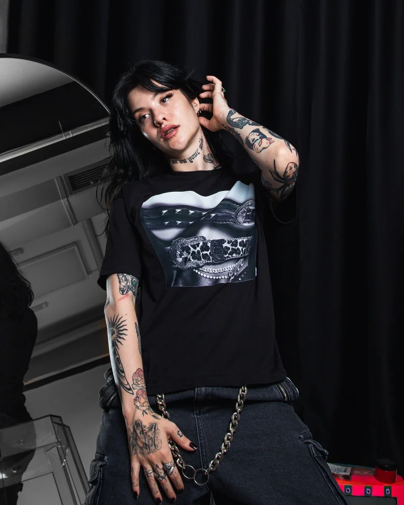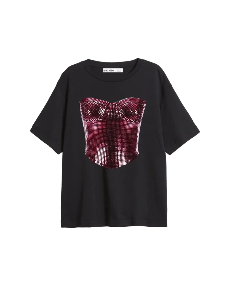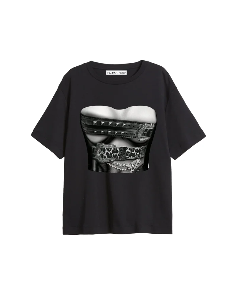 Corset Baskılı Relaxed Fit Siyah Kadın Tshirt