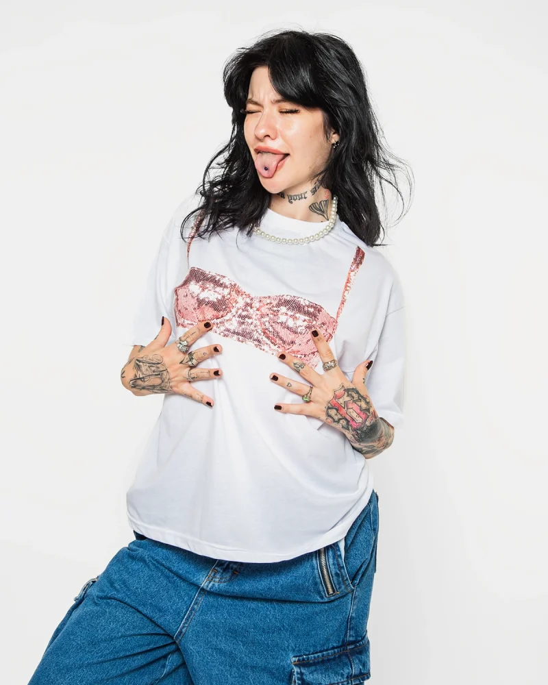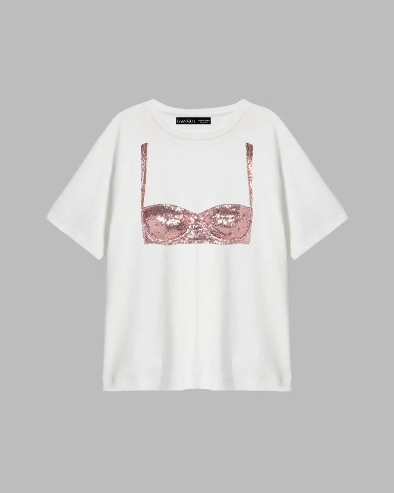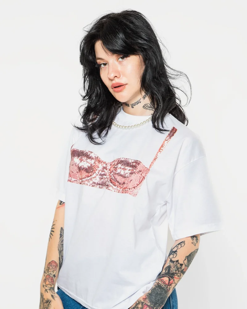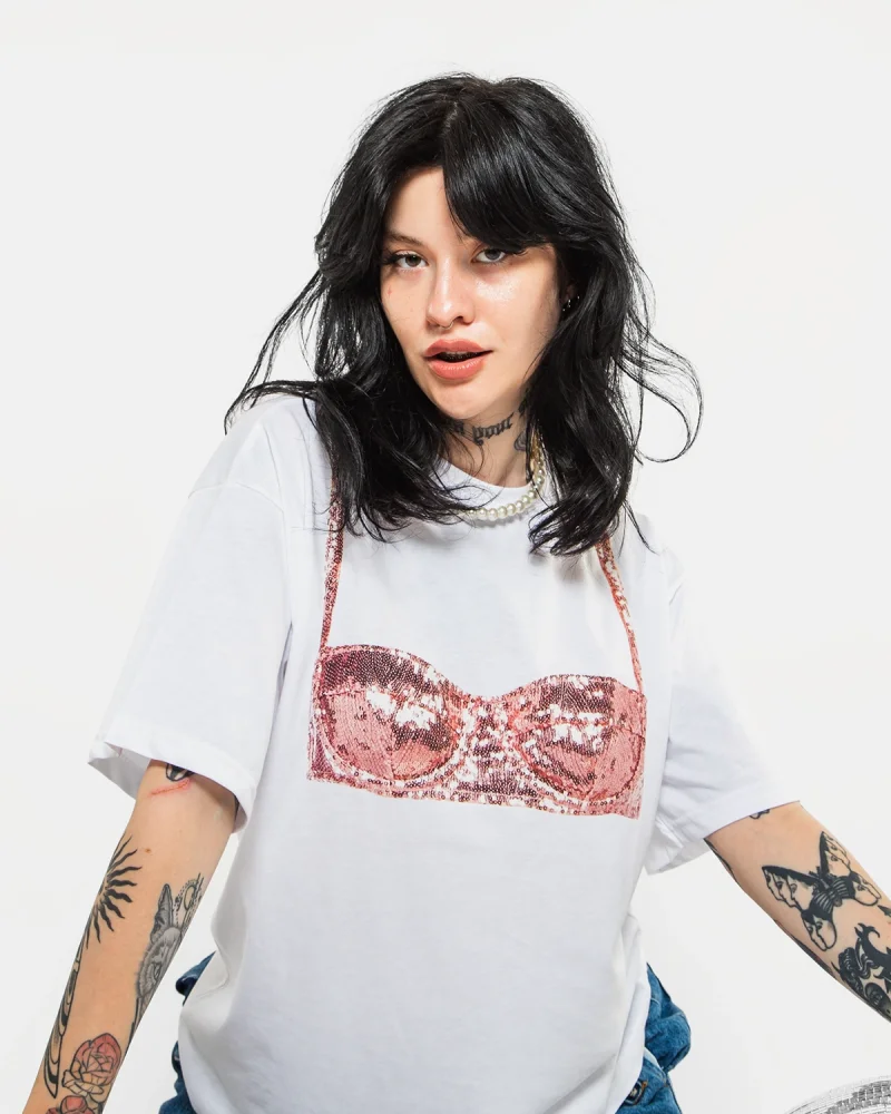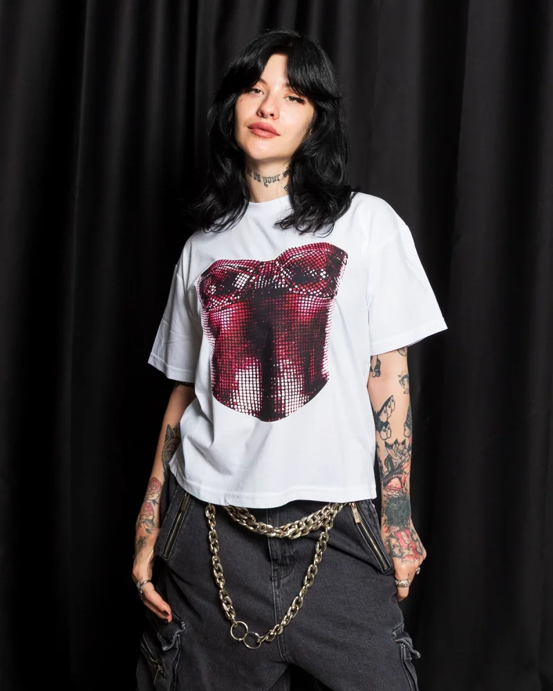 Disco Bralet Baskılı Relaxed Fit Beyaz Kadın Tshirt