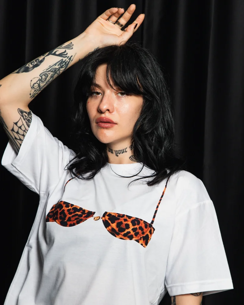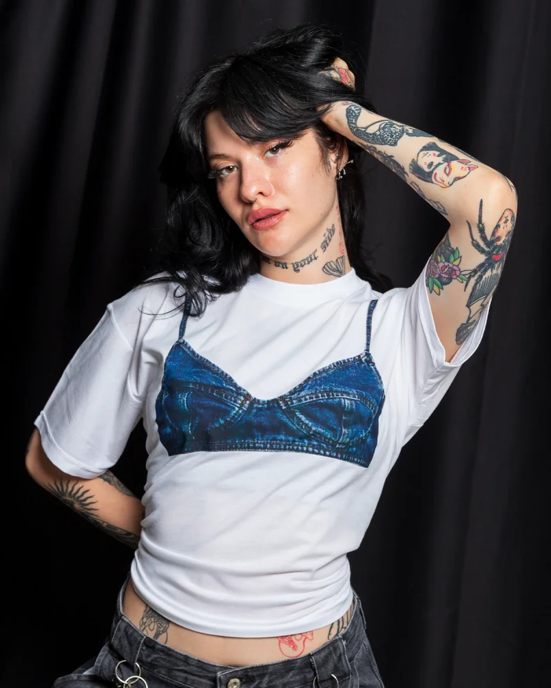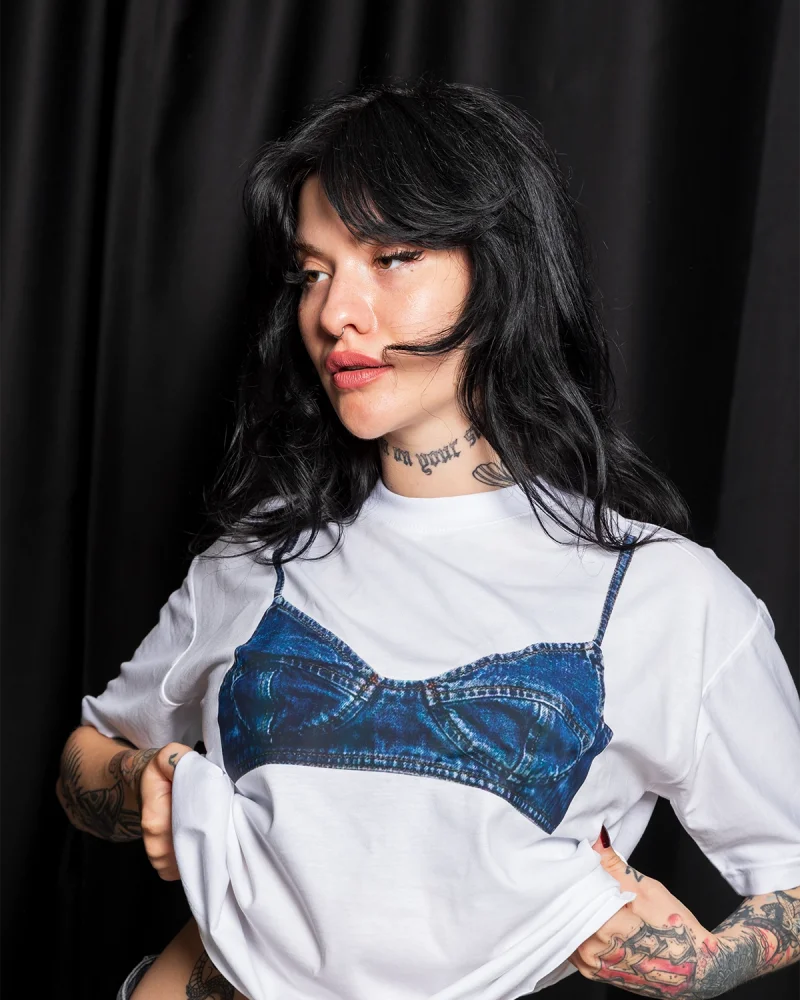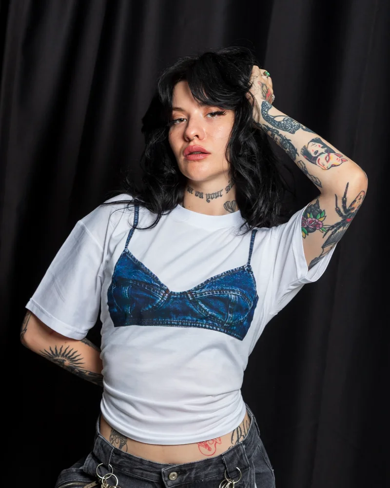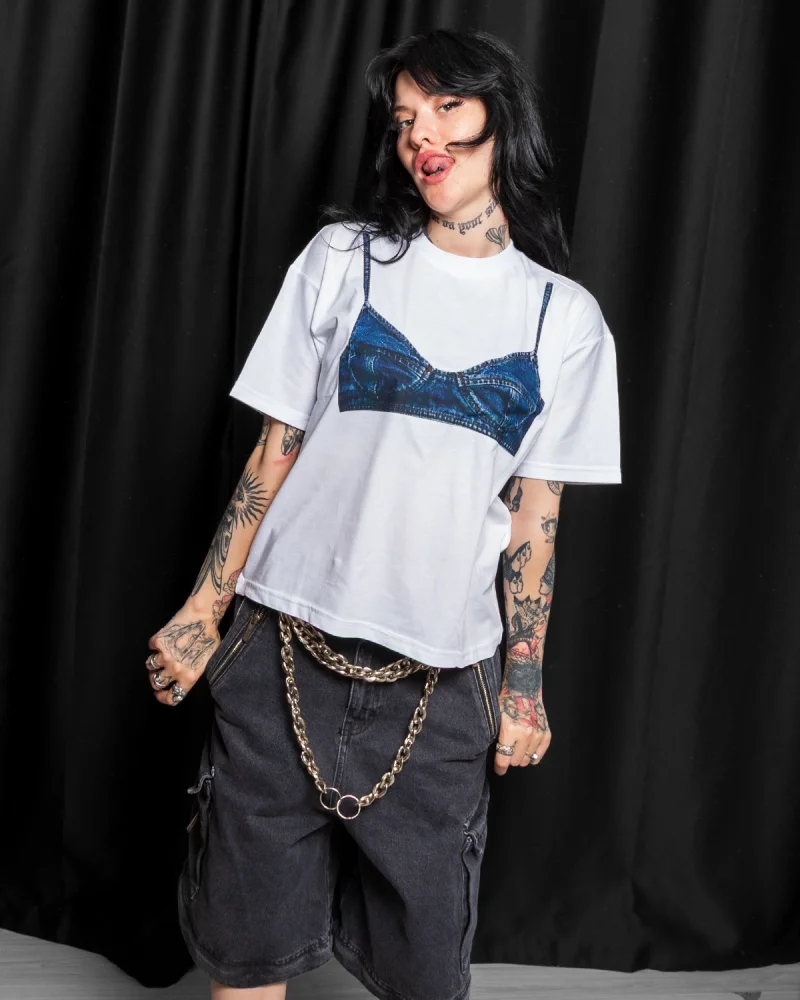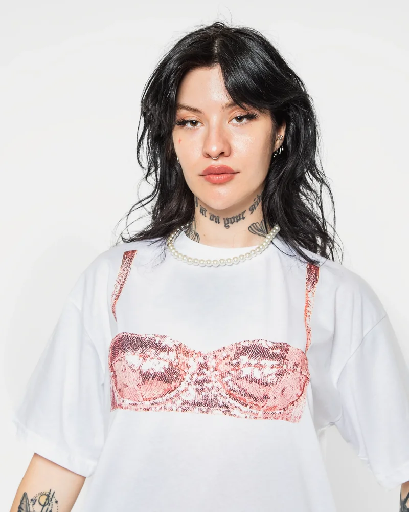 Disco Bralet Baskılı Relaxed Fit Beyaz Kadın Tshirt