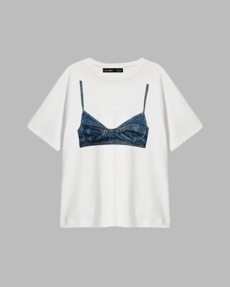 Denim Bra Baskılı Relaxed Fit Beyaz Kadın Tshirt