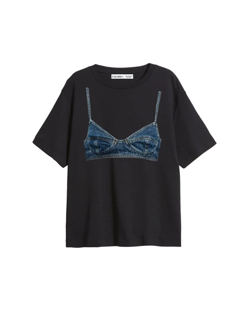 Denim Bra Baskılı Relaxed Fit Siyah Kadın Tshirt