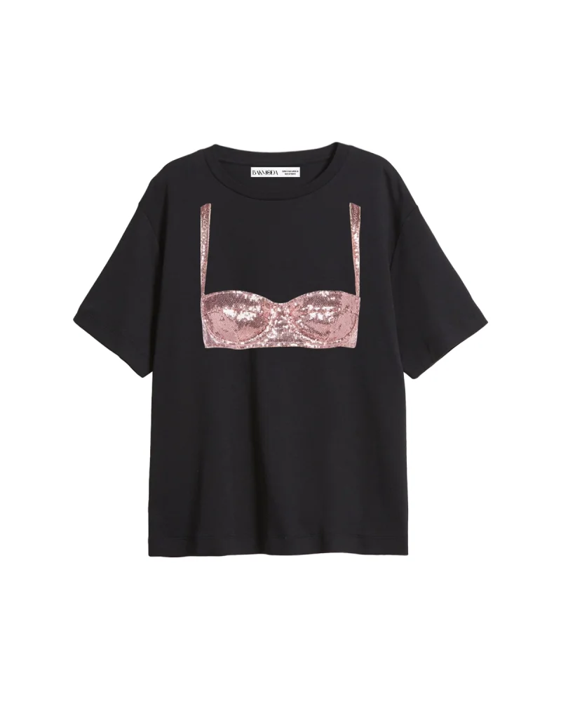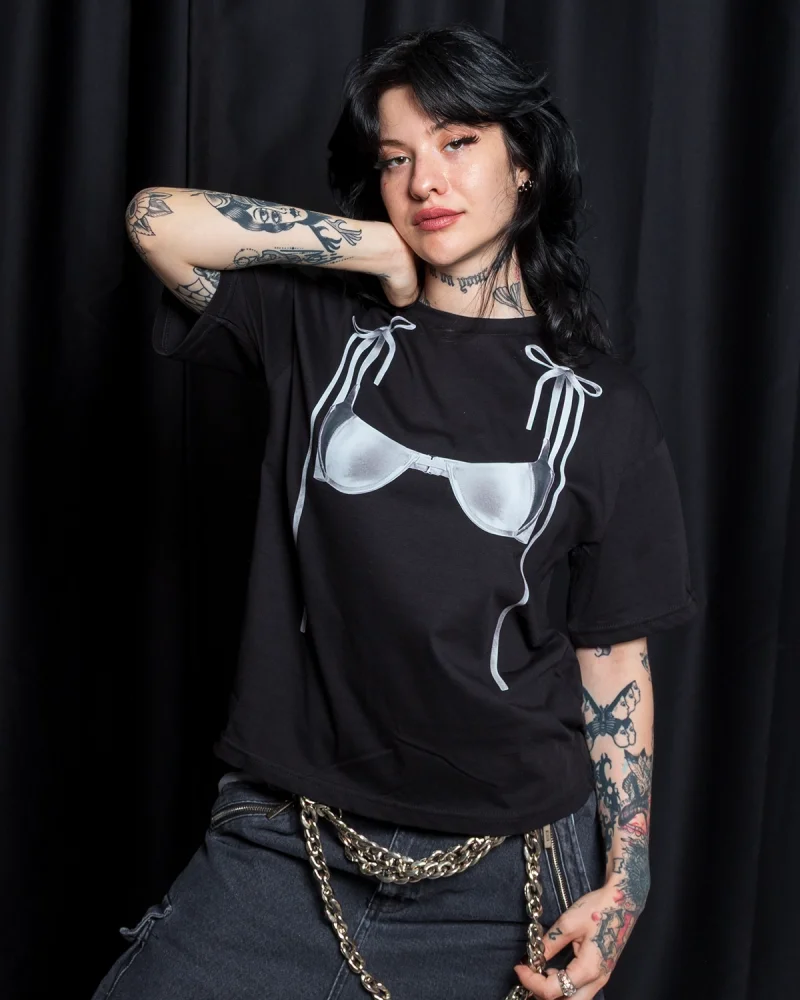 Disco Bralet Baskılı Relaxed Fit Siyah Kadın Tshirt