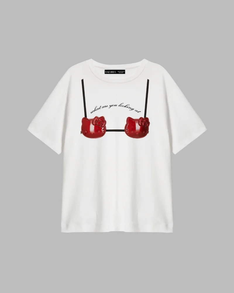 Red Kitty Baskılı Relaxed Fit Beyaz Kadın Tshirt