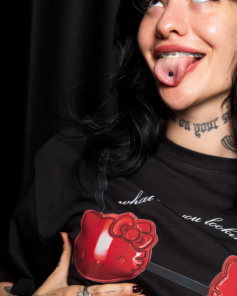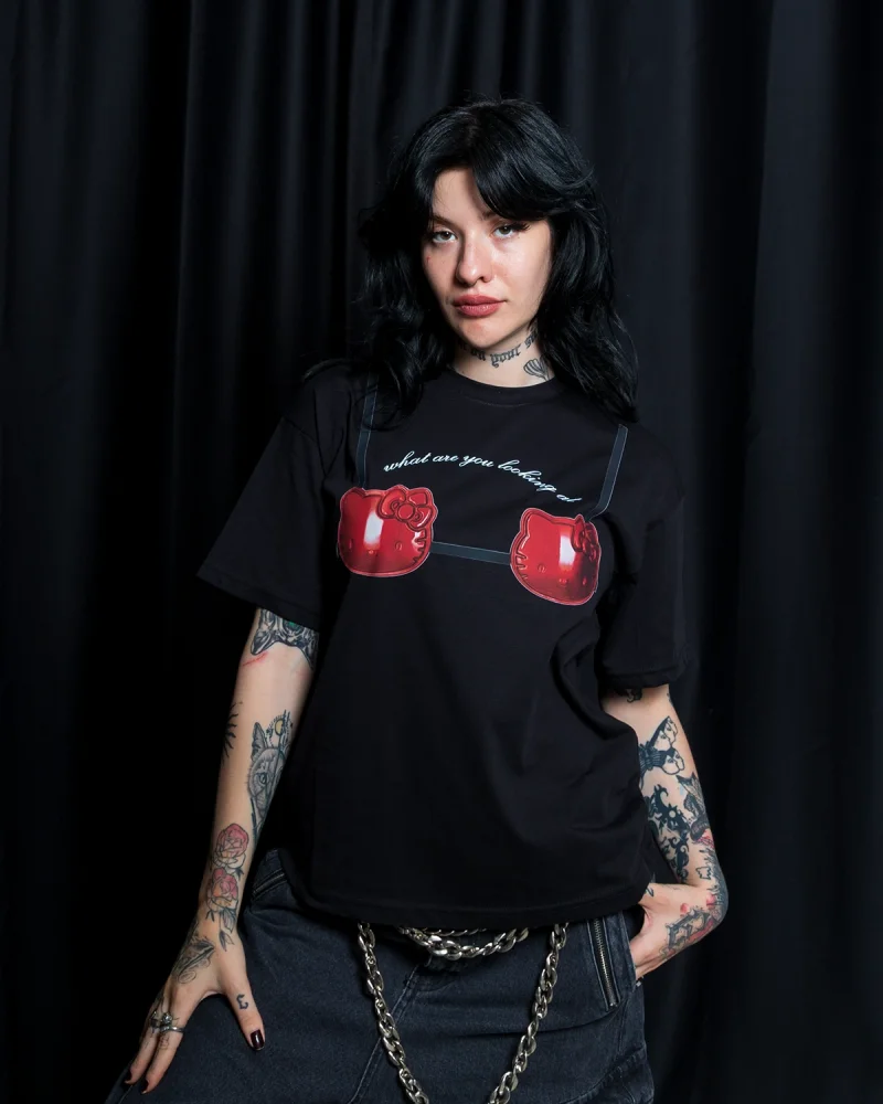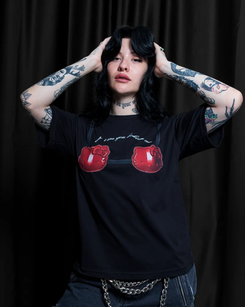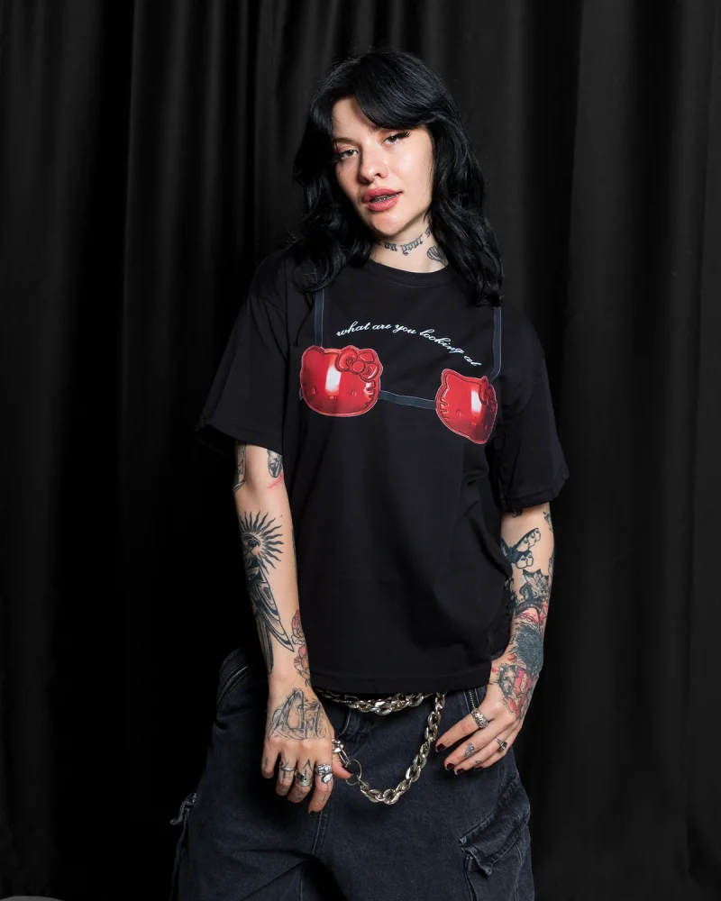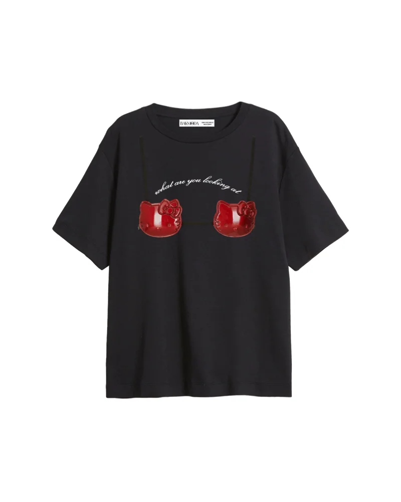Red Kitty Baskılı Relaxed Fit Siyah Kadın Tshirt