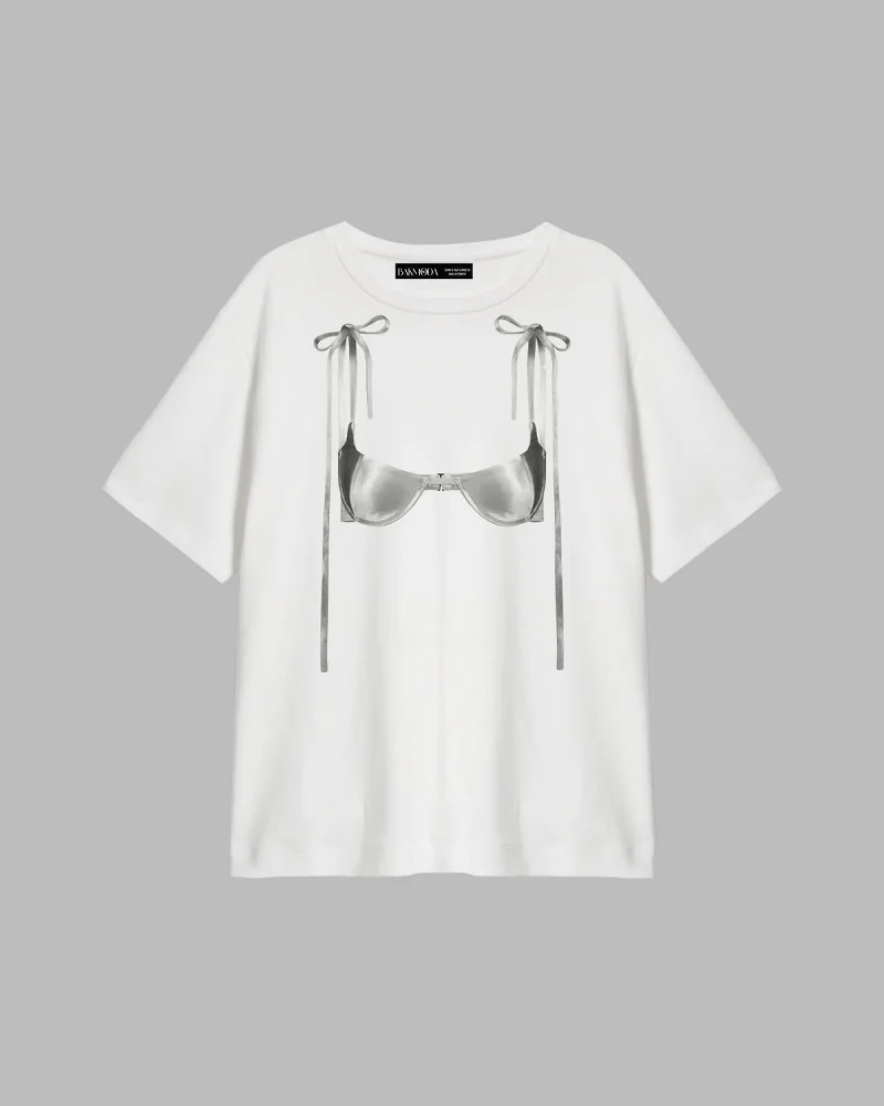 Ribbon Bikini Baskılı Relaxed Fit Beyaz Kadın Tshirt