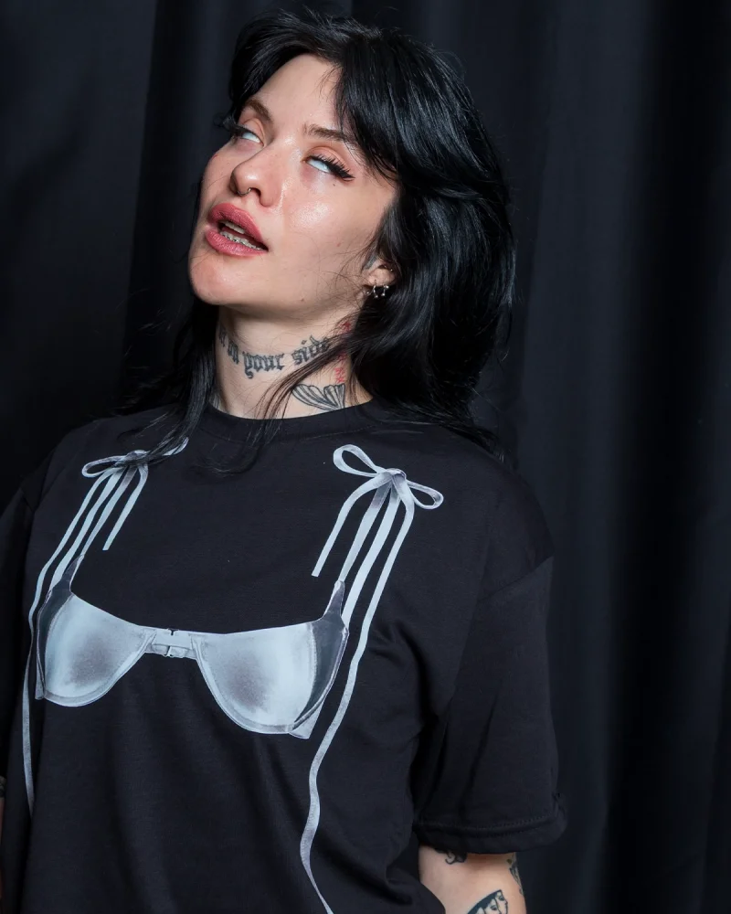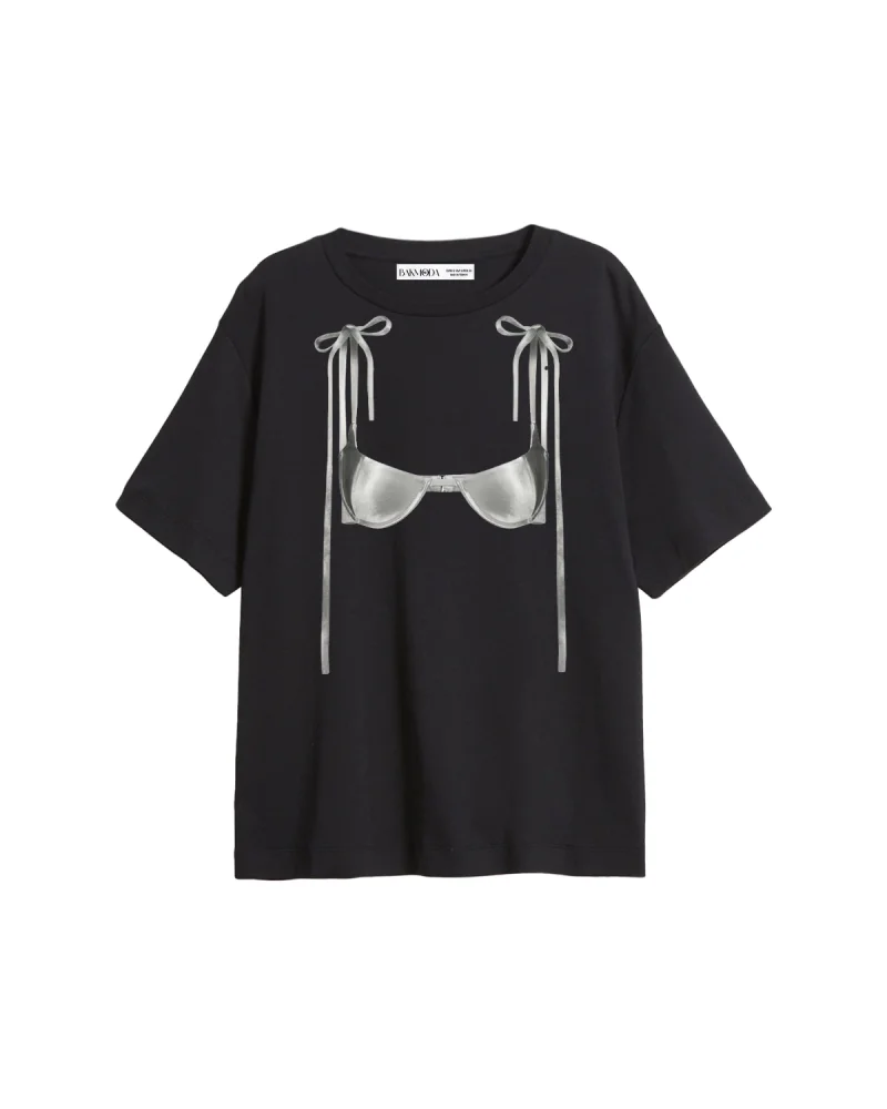 Ribbon Bikini Baskılı Relaxed Fit Siyah Kadın Tshirt