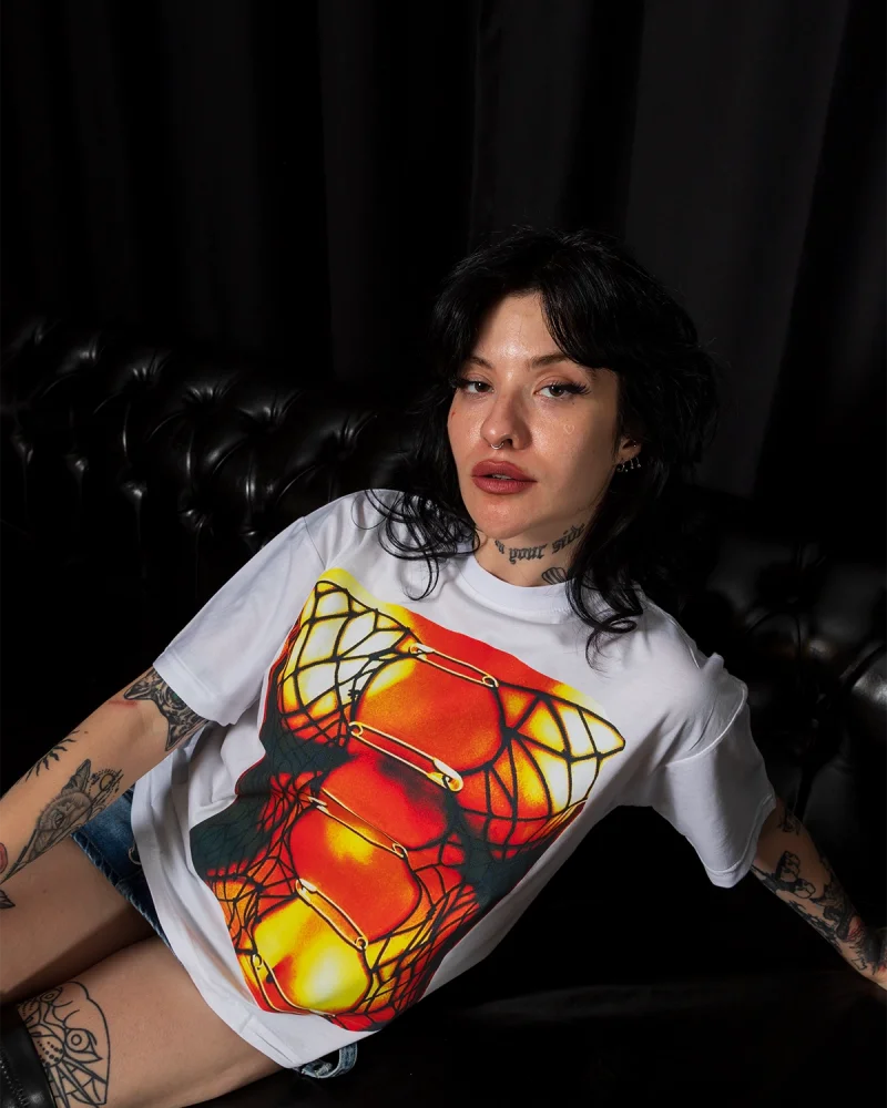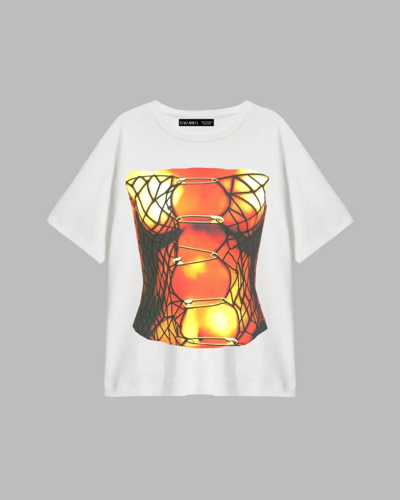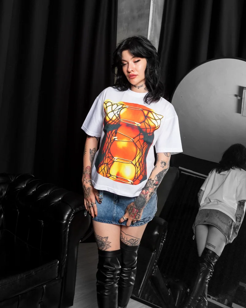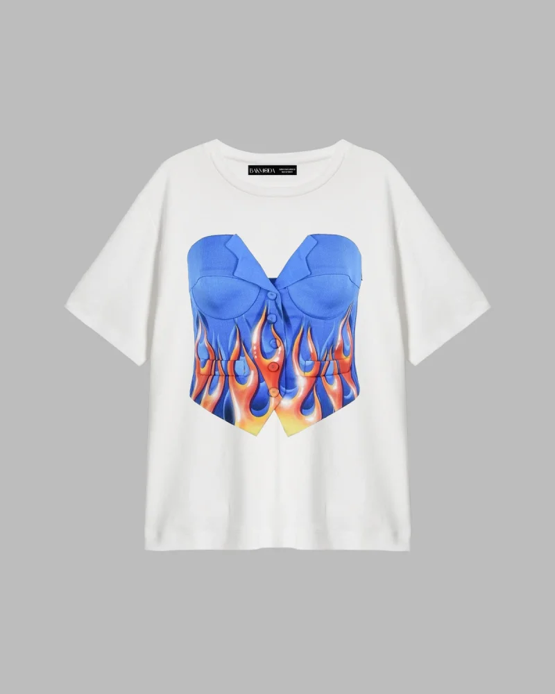 Flame Top Baskılı Relaxed Fit Beyaz Kadın Tshirt