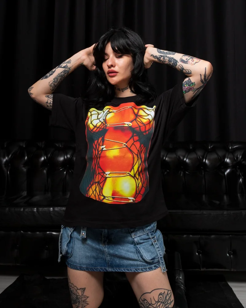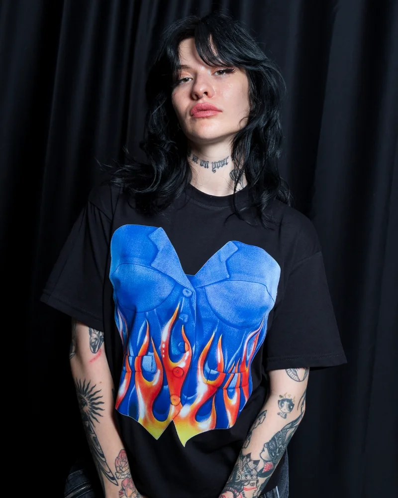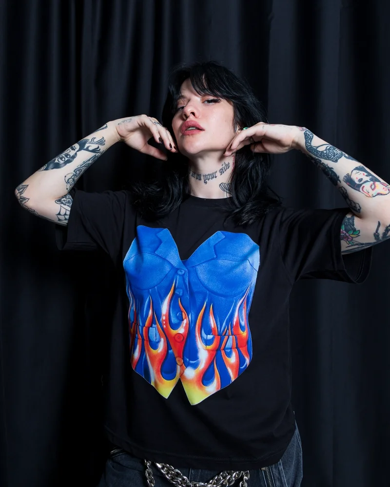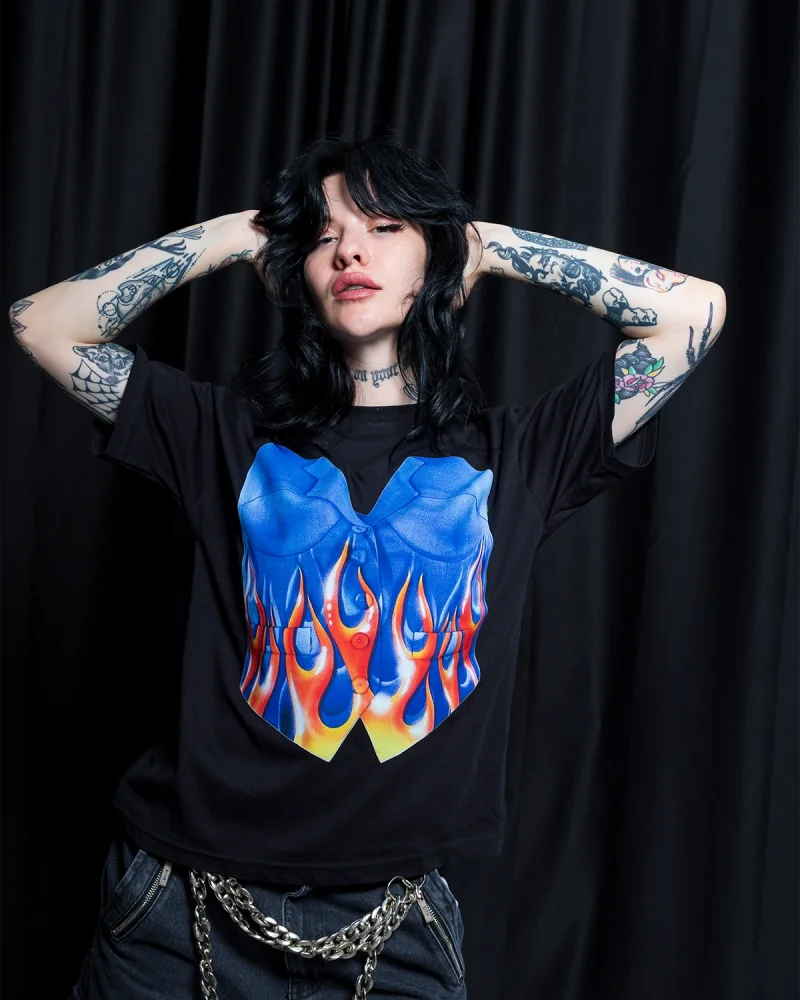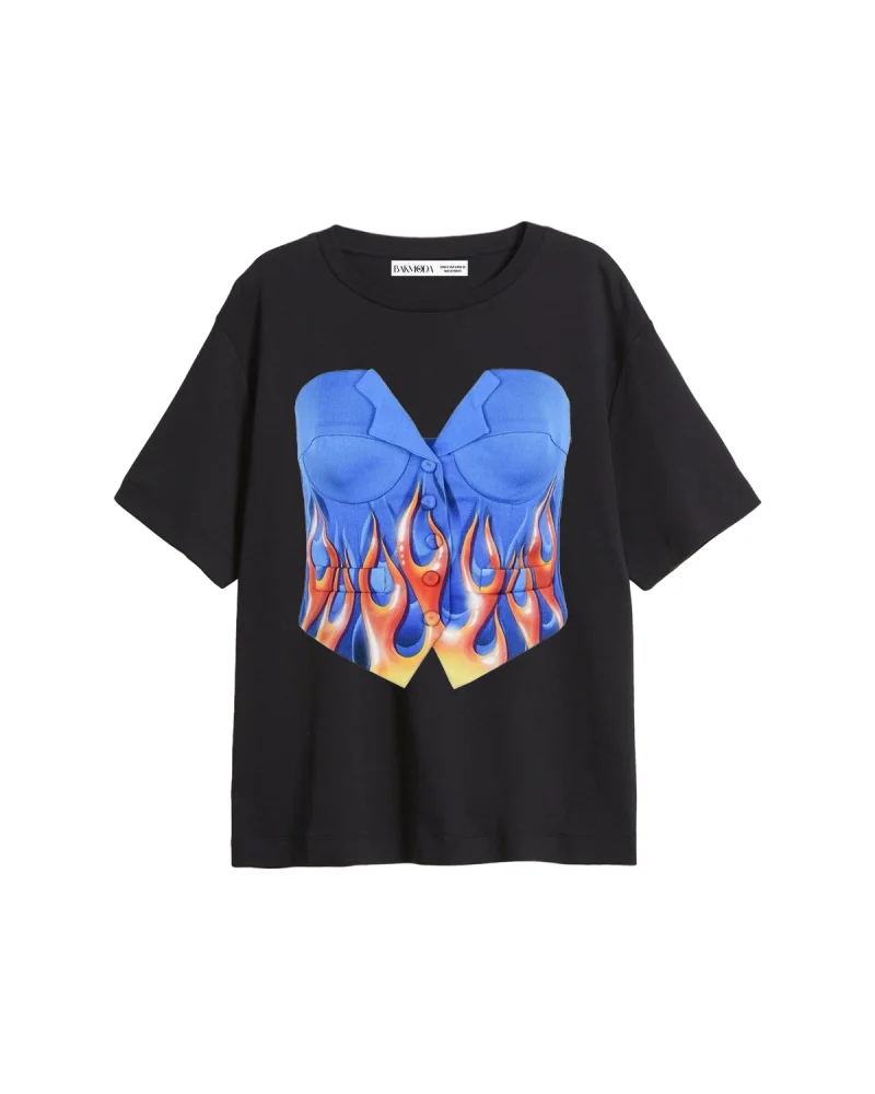 Flame Top Baskılı Relaxed Fit Siyah Kadın Tshirt