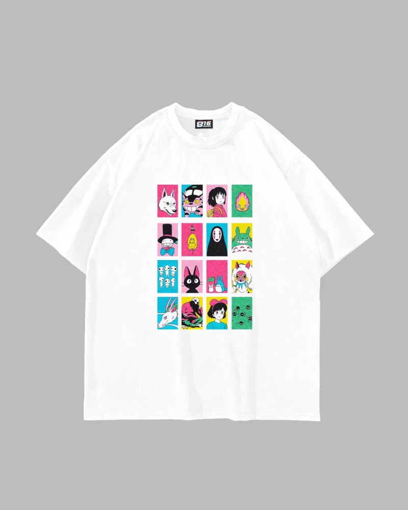 Ghibli Baskılı Oversize Unisex Beyaz Tshirt