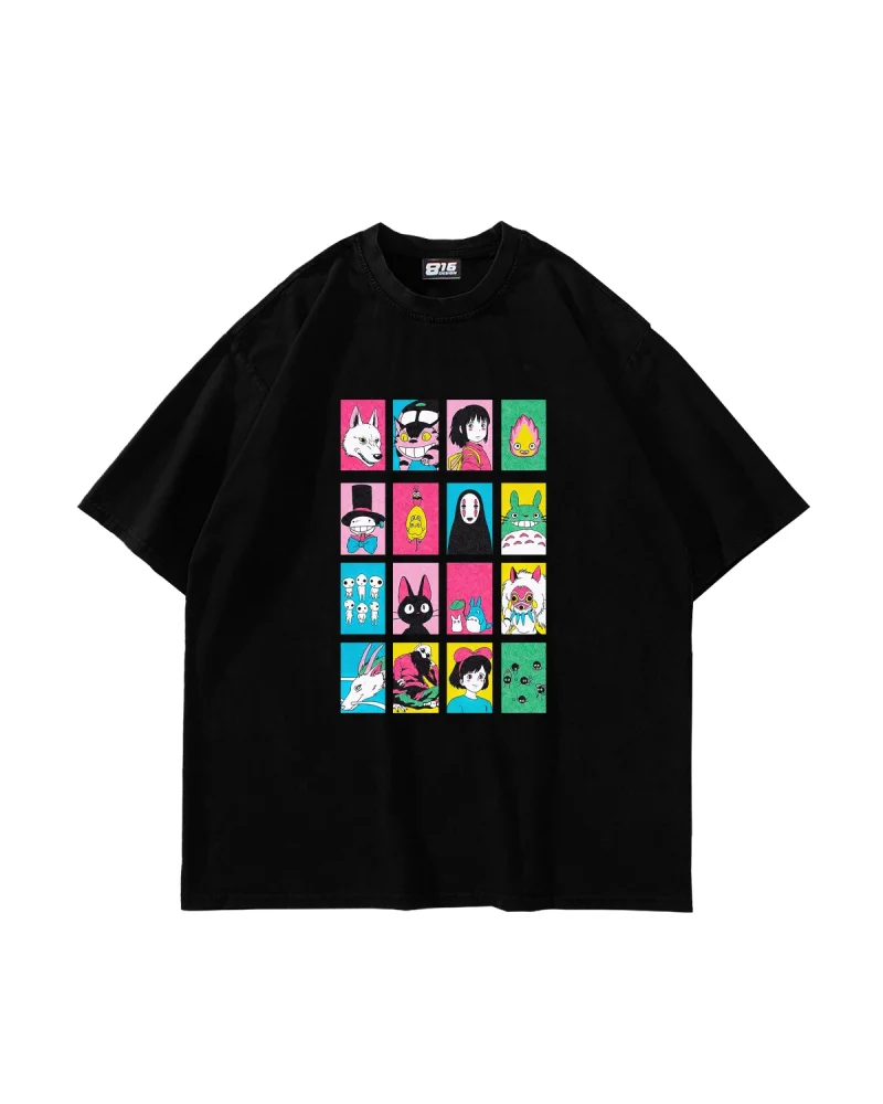 Ghibli Baskılı Oversize Unisex Siyah Tshirt