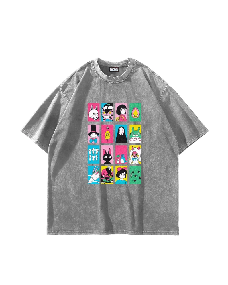 Ghibli Baskılı Oversize Unisex Yıkamalı Beyaz Tshirt