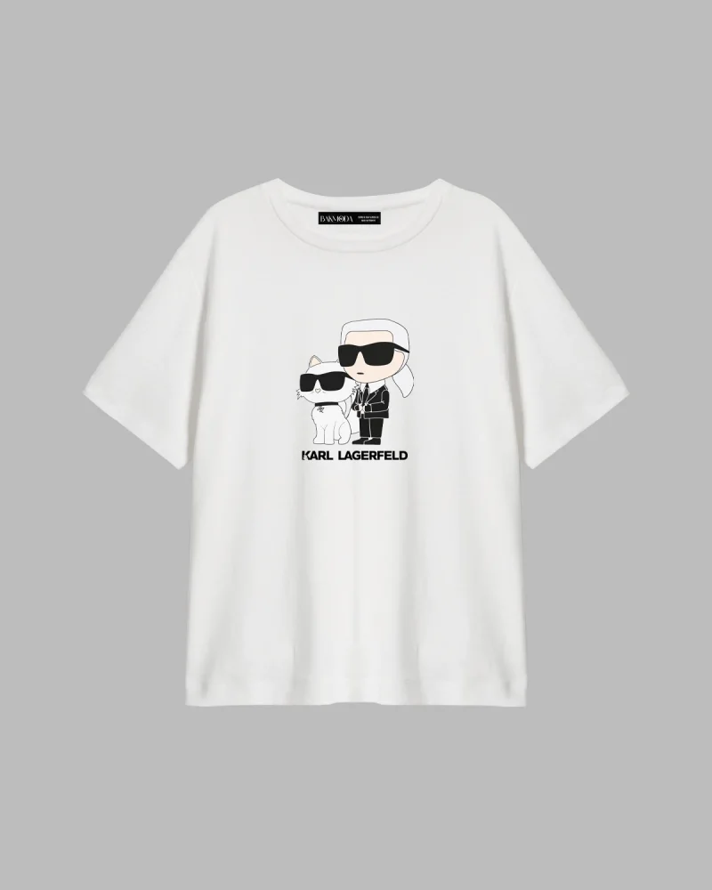 Karl Lagrfld Baskılı Relaxed Fit Beyaz Kadın Tshirt