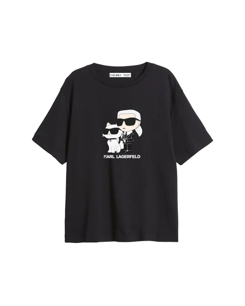 Karl Lagrfld Baskılı Relaxed Fit Siyah Kadın Tshirt