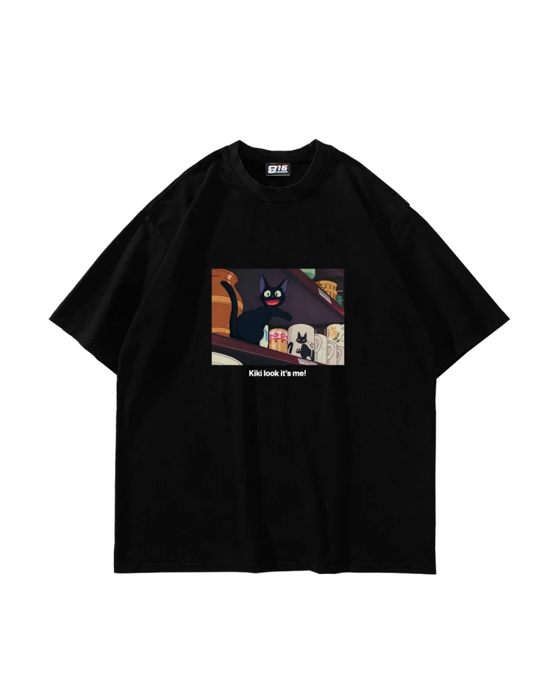 Kiki Look İt's Me Baskılı Oversize Unisex Siyah Tshirt