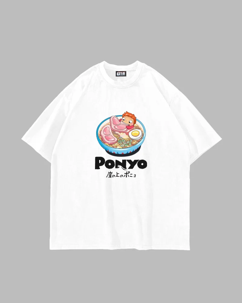 Ponyo Baskılı Oversize Unisex Beyaz Tshirt