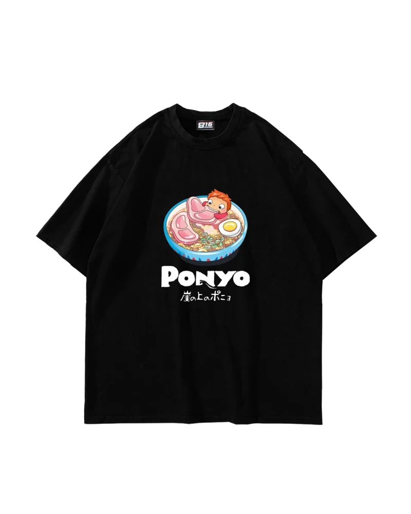 Ponyo Baskılı Oversize Unisex Siyah Tshirt