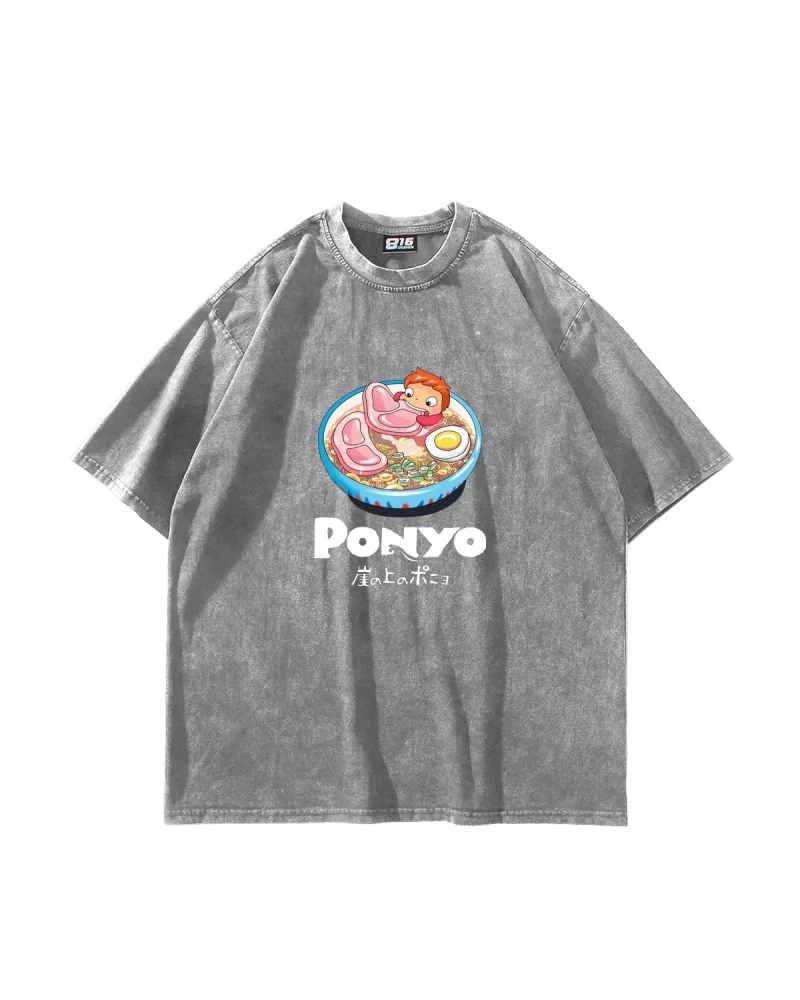 Ponyo Baskılı Oversize Unisex Yıkamalı Beyaz Tshirt