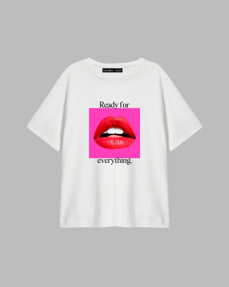 Ready For Everything Baskılı Relaxed Fit Beyaz Kadın Tshirt