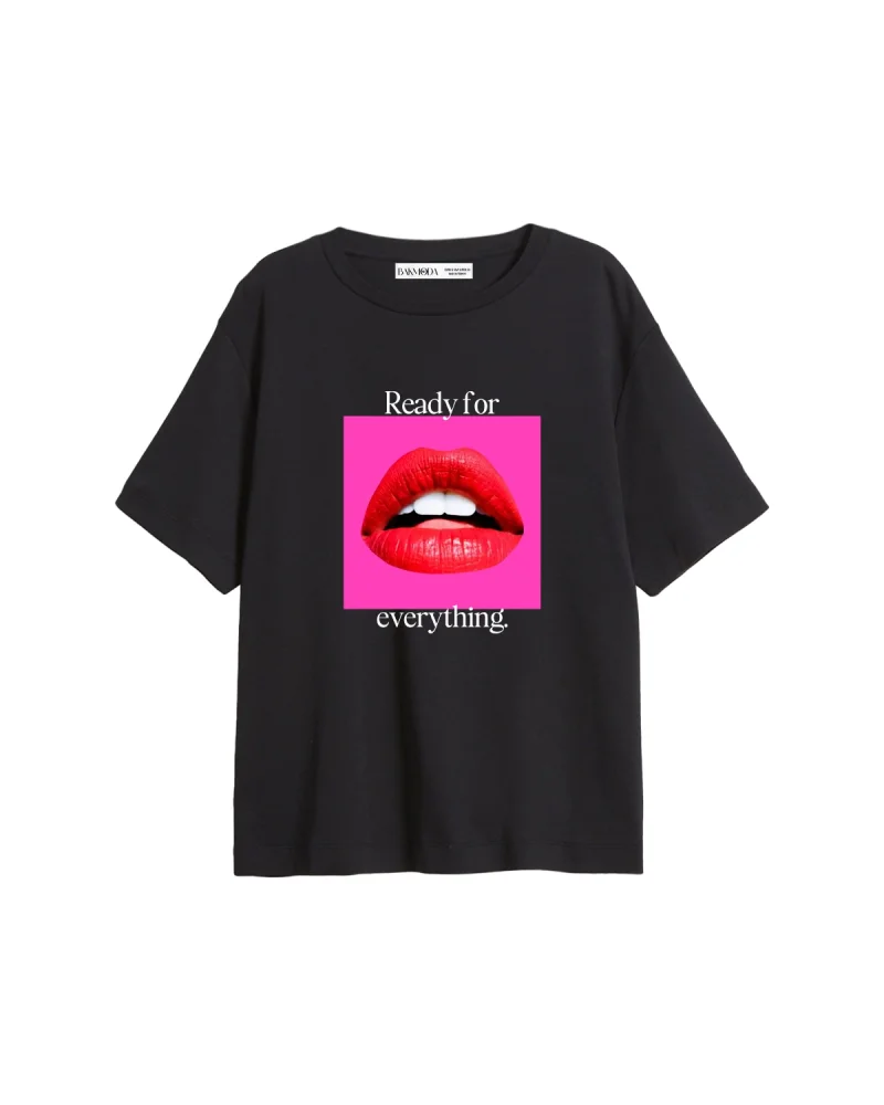 Ready For Everything Baskılı Relaxed Fit Siyah Kadın Tshirt
