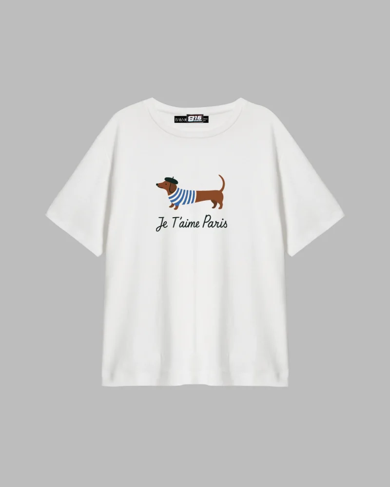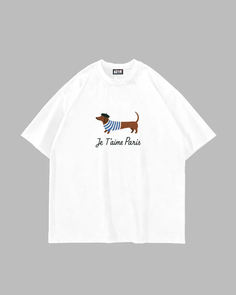 Je T'aime Paris Baskılı Oversize Unisex Beyaz Tshirt