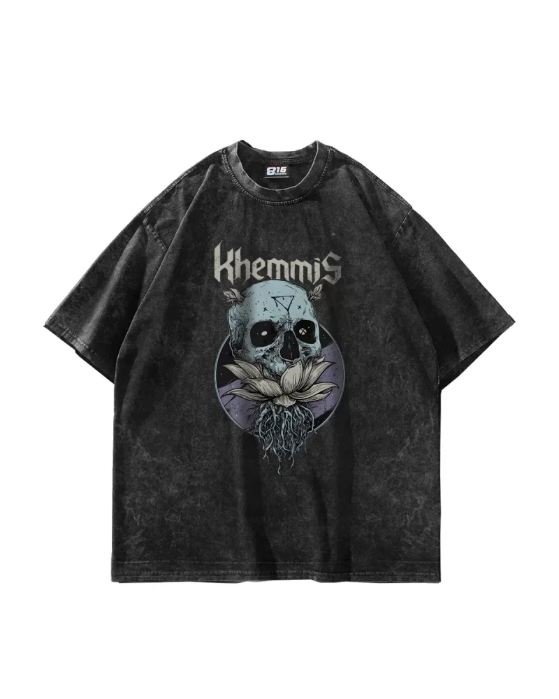 Khemmis Baskılı Oversize Unisex Yıkamalı Siyah Tshirt