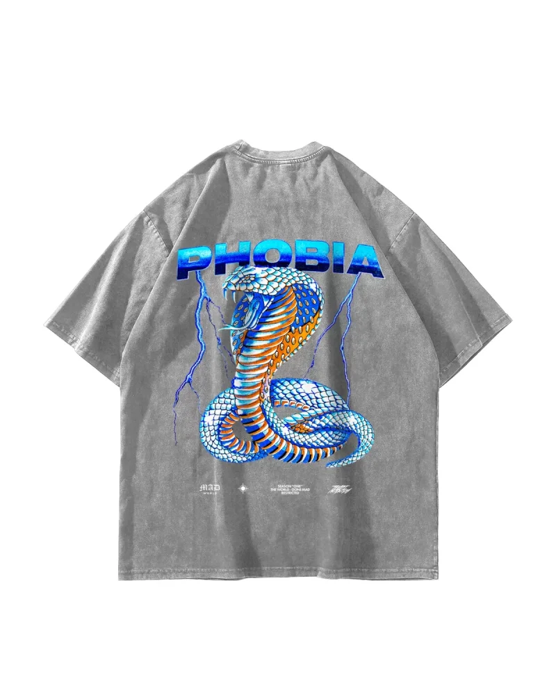 Phobia Baskılı Oversize Unisex Yıkamalı Beyaz Tshirt