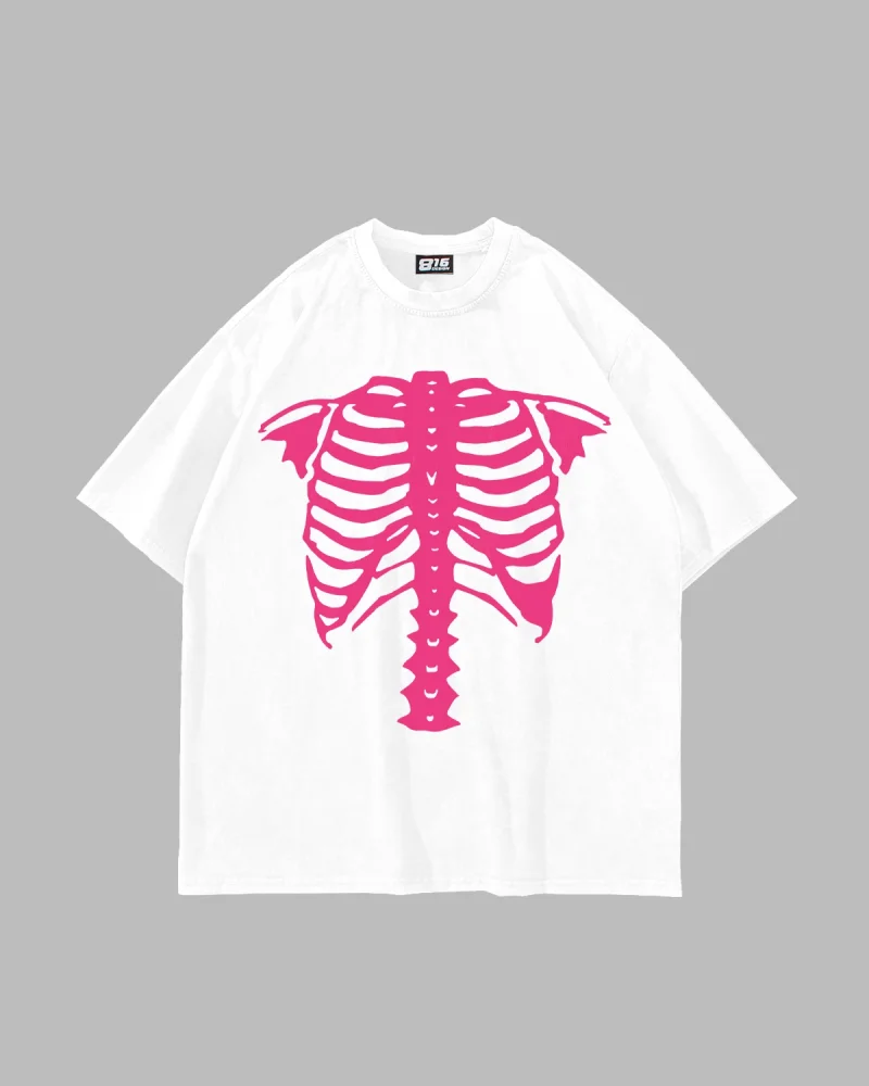 Pink Ribcage Baskılı Oversize Unisex Beyaz Tshirt