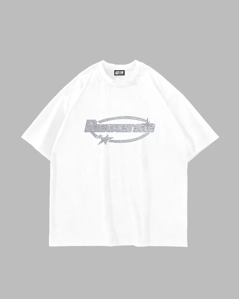 Reverse Baskılı Oversize Unisex Yıkamalı Beyaz Tshirt