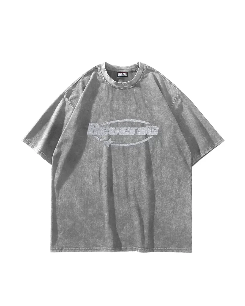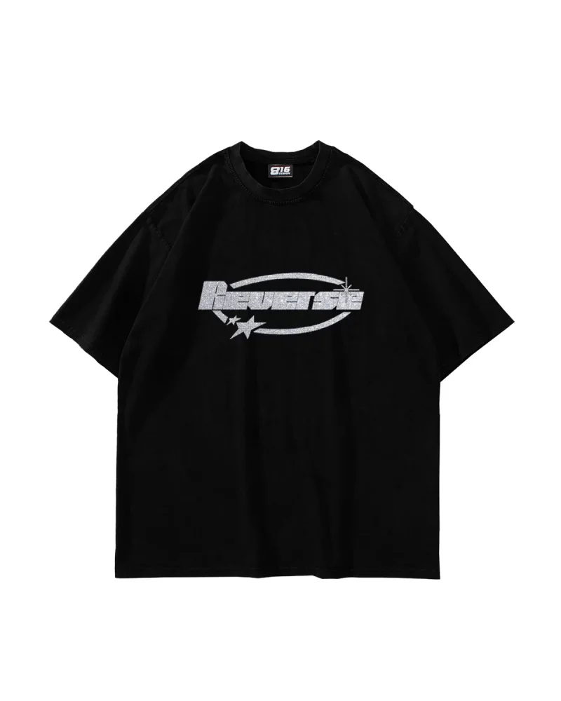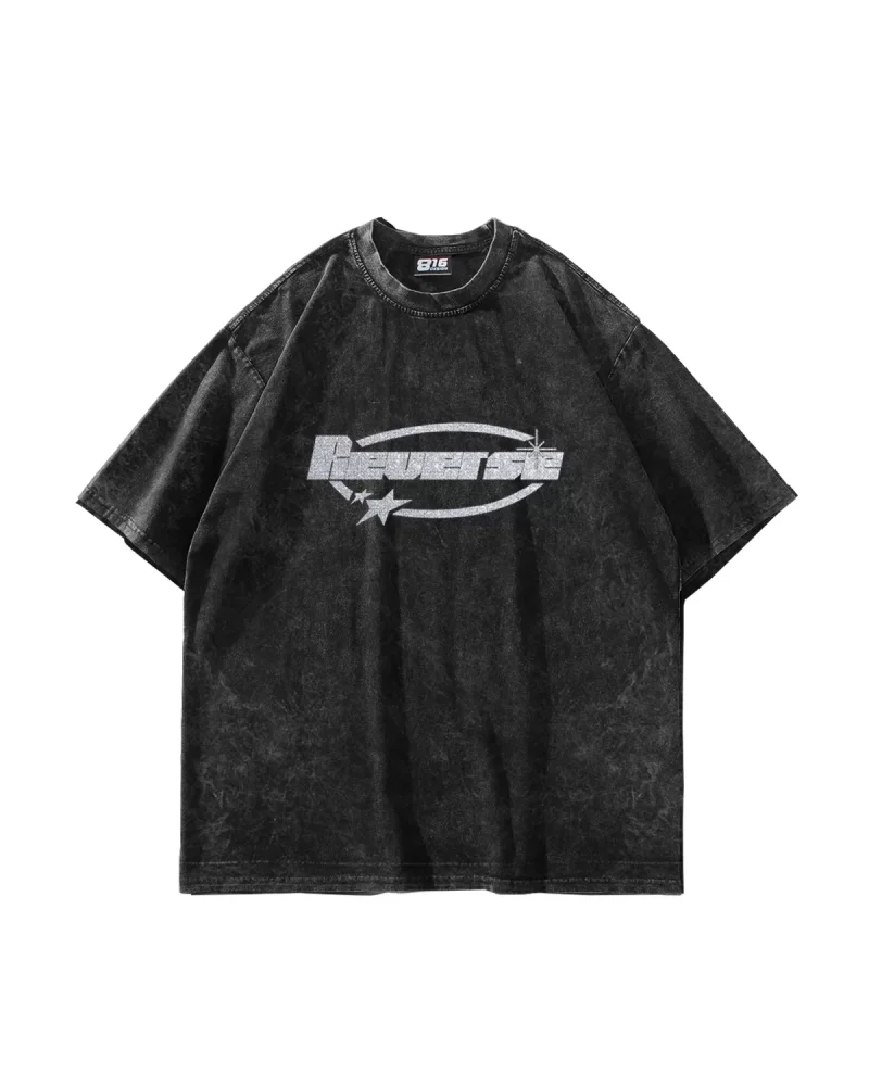 Reverse Baskılı Oversize Unisex Yıkamalı Siyah Tshirt