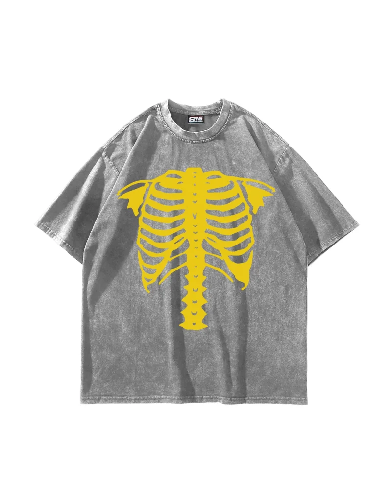 Yellow Ribcage Baskılı Oversize Unisex Yıkamalı Beyaz Tshirt