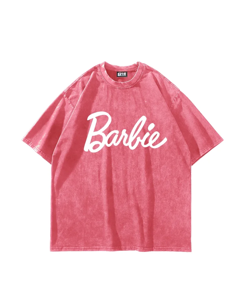Barbie Baskılı Oversize Unisex Yıkamalı Pembe Tshirt