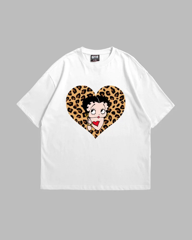Betty Boop Baskılı Oversize Unisex Beyaz Tshirt