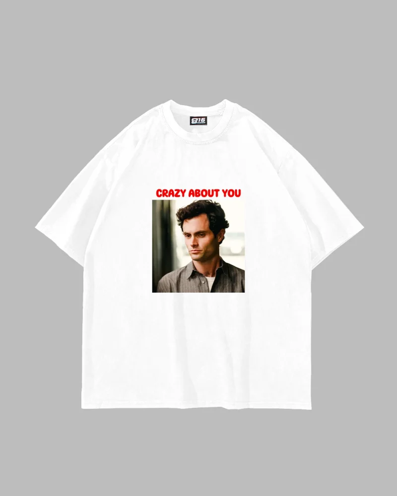 Crazy About You Joe Baskılı Oversize Unisex Beyaz Tshirt