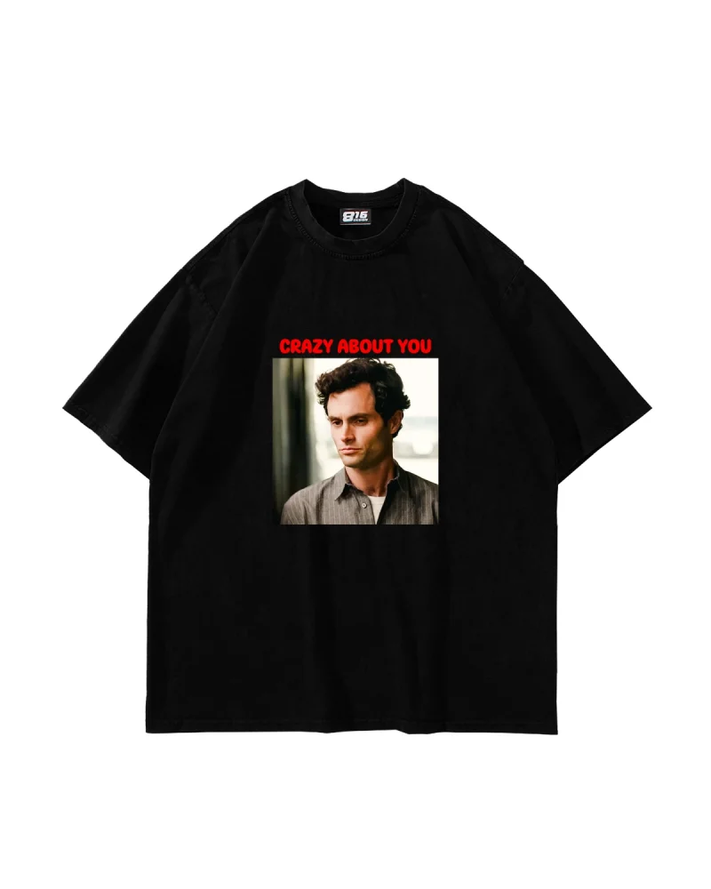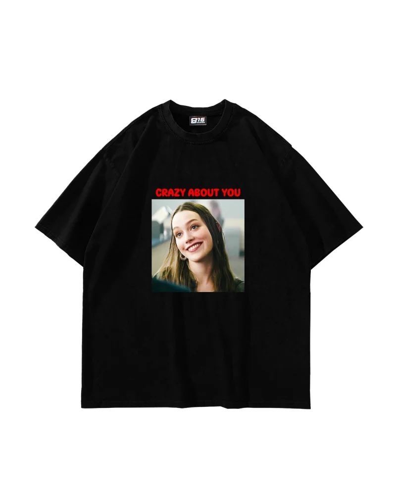 Crazy About You Joe Baskılı Oversize Unisex Siyah Tshirt